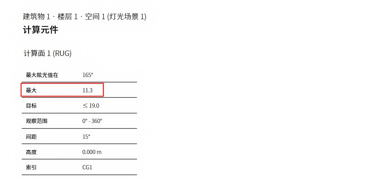 目前大多数软件中默认输出的UGR值,并不符合CIE标准所定义的UGRAppl,而是UGRPoint;而很多灯具说明书标注的UGRLum,也不能代表空间的实际眩光水平。