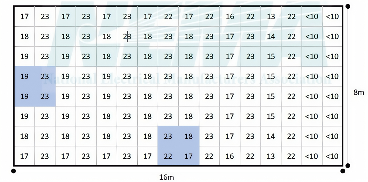计算方式:在两个“1H×1H”区域(房间长边和短边中央)内,采集多个UGR点值;