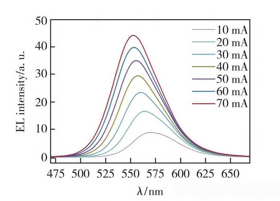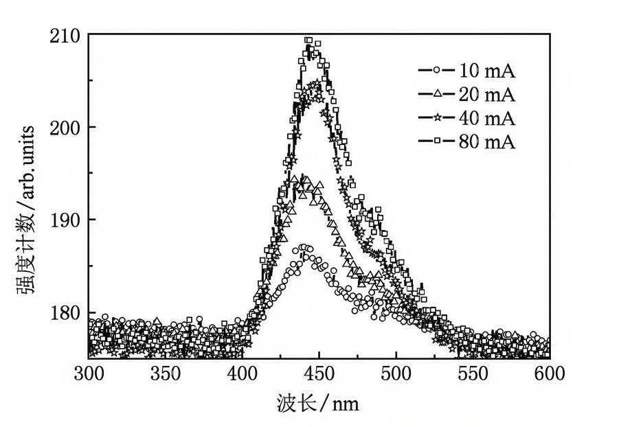(图1 不同注入电流下GaN LED样品的EL光谱)